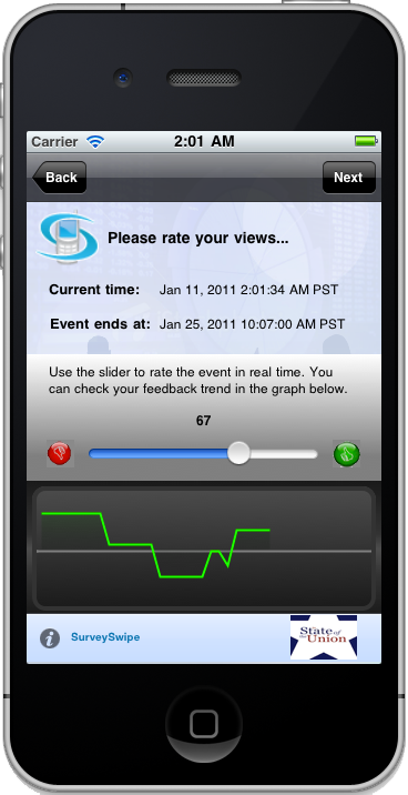 The explosive growth of smart phones, coupled with its inherent location-based underpinnings make these devices the perfect platform to collect real-time, participatory feedback during the State of the Union. We think this represents a huge opportunity to engage with your constituents in unique ways.